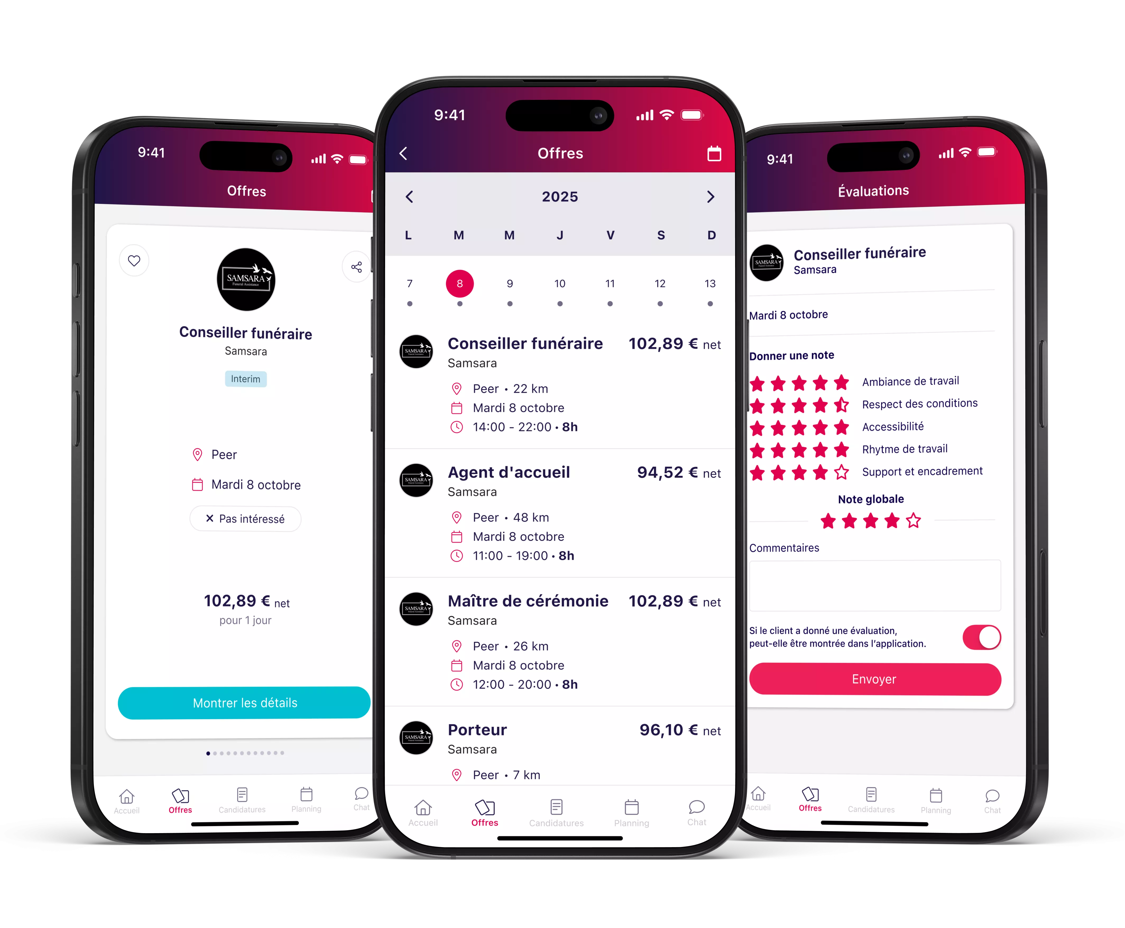 - Un outil de planification permettant de publier gratuitement des offres d'emploi, même jusqu'à deux heures avant le début de la mission.